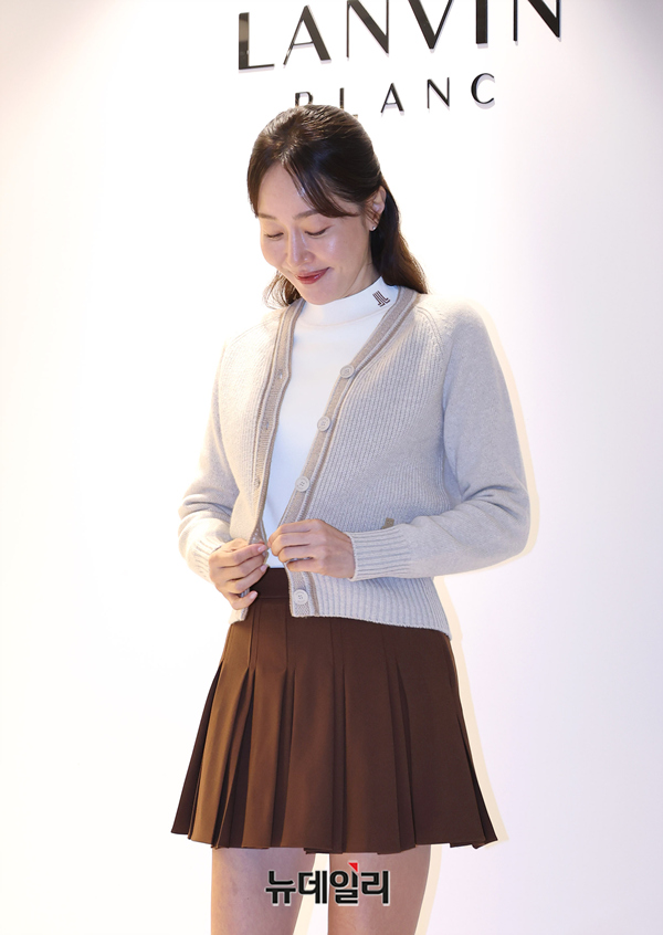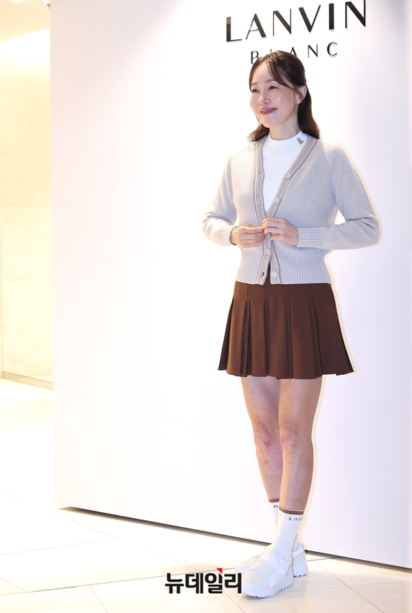배우 엄지원이 9일 오전 서울 송파구 롯데백화점 잠실점에서 열린 골프웨어 브랜드 랑방블랑 포토콜에서 포즈를 취하고 있다.