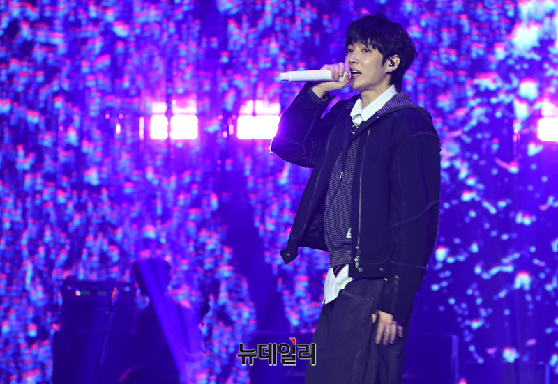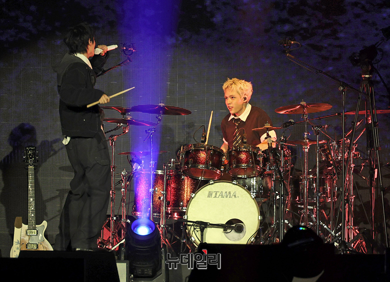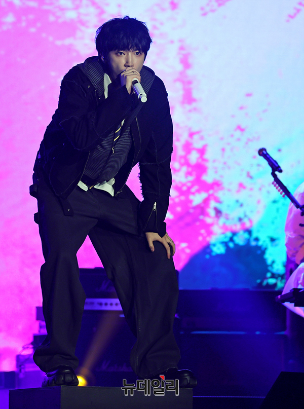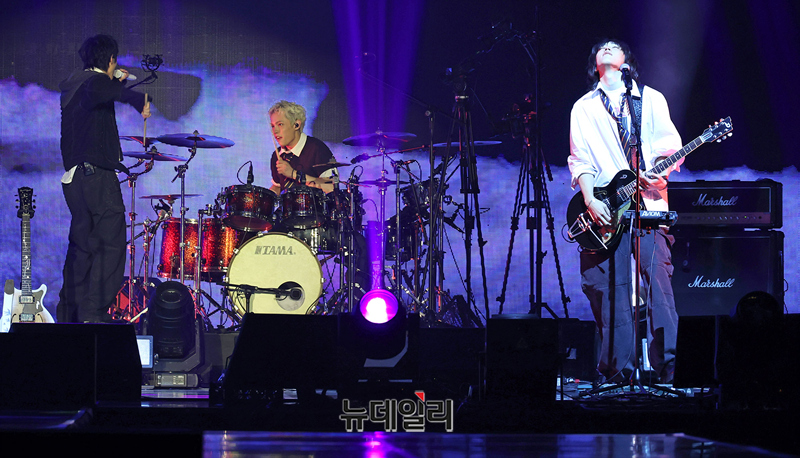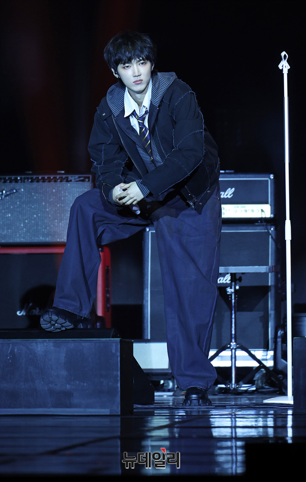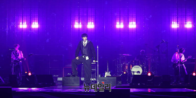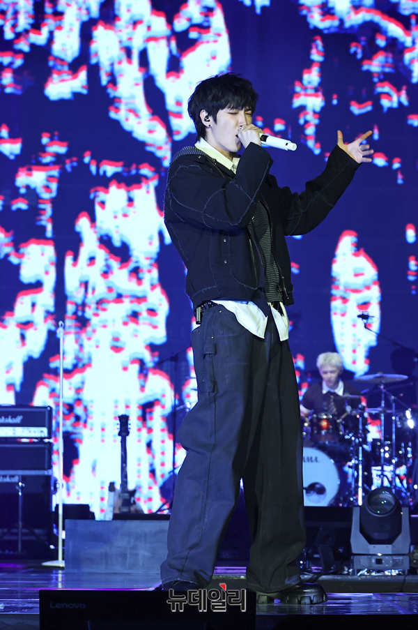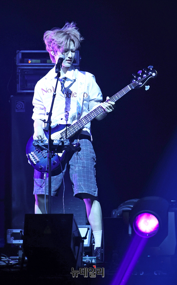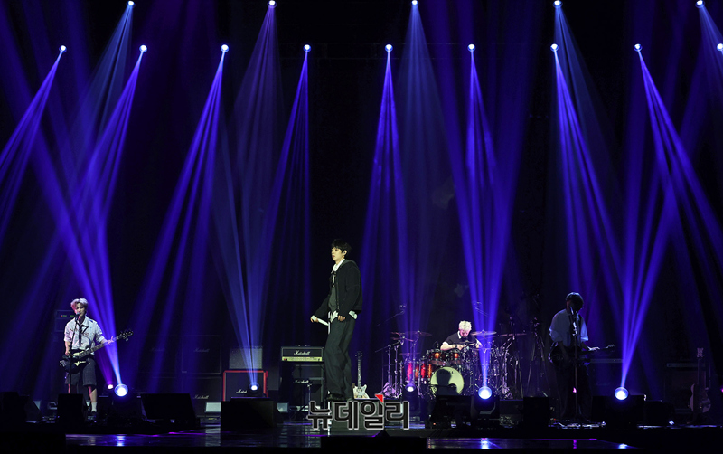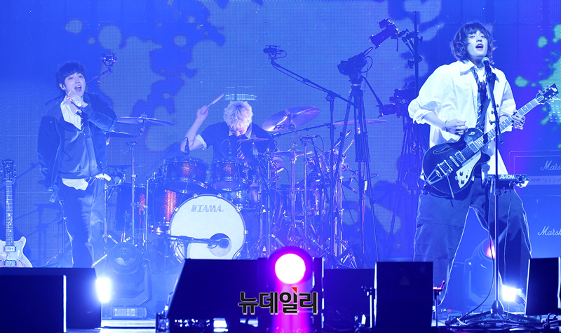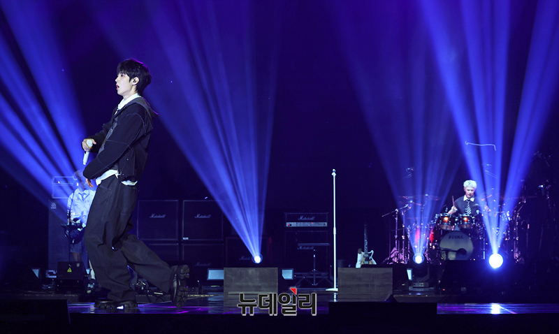 신인밴드 AxMxP(에이엠피 : 주환, 아유준, 크루, 김신)가 10일 오후 서울 송파구 올림픽공원 올림픽홀에서 열린 데뷔 앨범이자 첫 정규앨범 쇼케이스에서 타이틀곡 무대를 선보이고 있다.에이피엠은 FNC엔터테인먼트에서 10년 만에 선보이는 신인밴드다. 팀명 AxMxP는 Amplify Music Power의 약어로 음악의 힘을 극대화한다는 뜻을 담았다.이번 앨범은 서로 다른 장르와 이야기를 담은 세곡을 트리플 타이틀곡으로 구성했다. 총 10개 트랙.