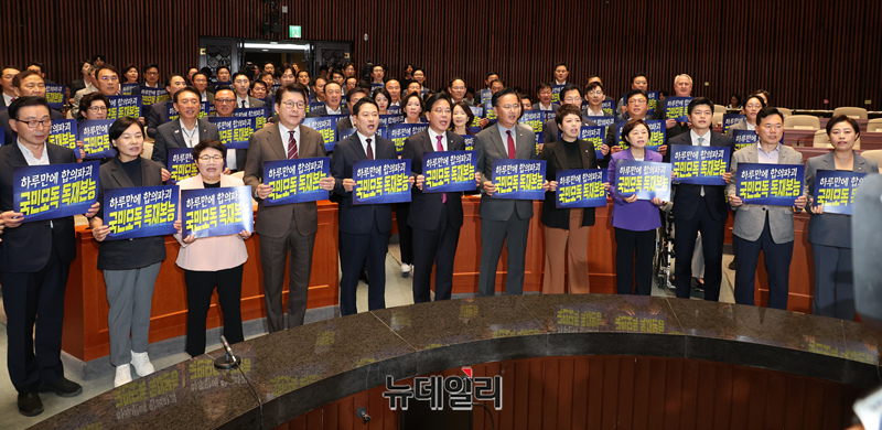[포토] 민주당 3대 특검법 합의 파기 규탄하는 국민의힘
