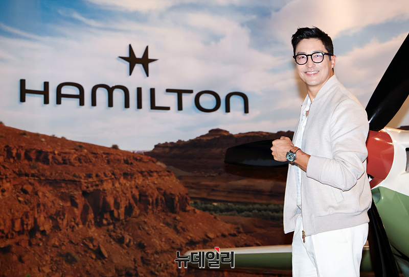배우 다니엘 헤니가 11일 오후 서울 강남구 꼴라보 하우스 도산에서 열린 워치 브랜드 해밀턴 팝업스토어 오픈 기념 포토월에서 포즈를 취하고 있다.
