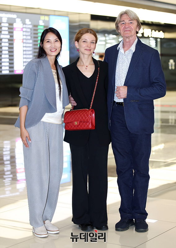 배주윤 전 볼쇼이 발레단 단원, 예브게니야 오브라초바 볼쇼이 발레단 최고 수석 프리마 발레리나, 유리 발렌티노비치 바슈첸코 전 볼쇼이 발레단 최고 수석이 12일 오후 김포국제공항을 통해 입국하며 기념촬영을 하고 있다.(주)발레앤모델AI(대표 최준석) 주최로 열리는 '예브게니야 오브라초바(Evgenia Obraztsova) 발레 워크샵'은 10월 5일 소치에서 열리는 유리그리가로비치 추모 국제발레콩쿠르에 참여할 한국 국가대표 학생들을 선발하는 자리다.이번 워크샵은 예브게니야 오브라초바 볼쇼이 발레단 최고 수석 프리마 발레리나가 강연을, 유리 바슈첸코 전 볼쇼이 발레단 최고 수석과 배주윤 전 볼쇼이 발레단 단원이 심사에 나선다.