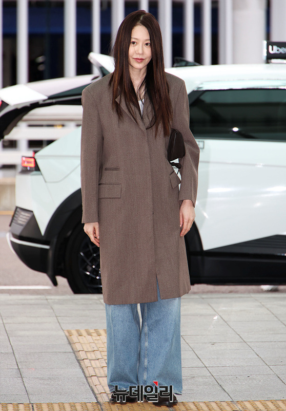 배우 고현정이 12일 오전 인천국제공항에서 패션 브랜드 COS(코스) 2025년 F/W 컬렉션 참석을 위해 미국 뉴욕으로 출국하고 있다. (인천=서성진 기자)