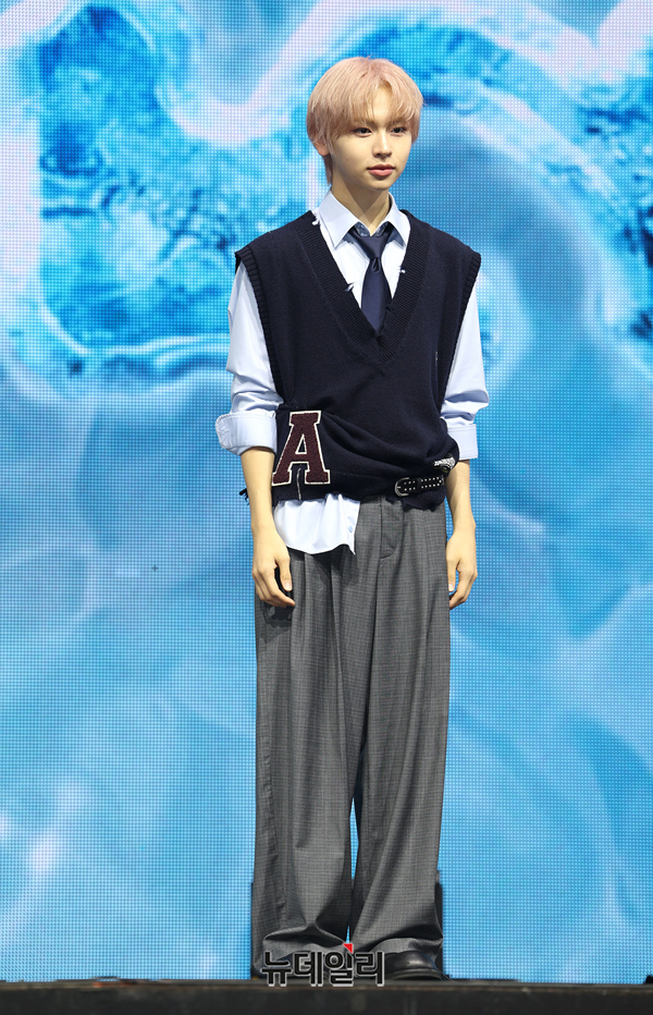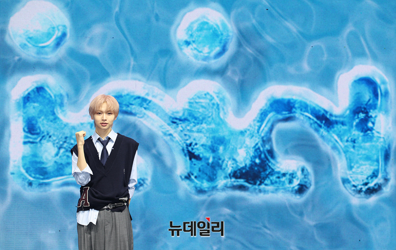 스타쉽 뉴 보이그룹 'IDID(아이딧)' 추유찬이 15일 오후 서울 광진구 예스24 라이브홀에서 열린 첫번째 EP앨범 I did it(아이 딧 잇) 쇼케이스에서 포즈를 취하고 있다.