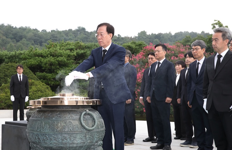 이석연 국민통합위원장이 16일 국립서울현충원을 방문해 현충탑에 헌화와 분향을 하고 순국선열과 호국영령들의 숭고한 뜻을 기리는 시간을 가졌다.
