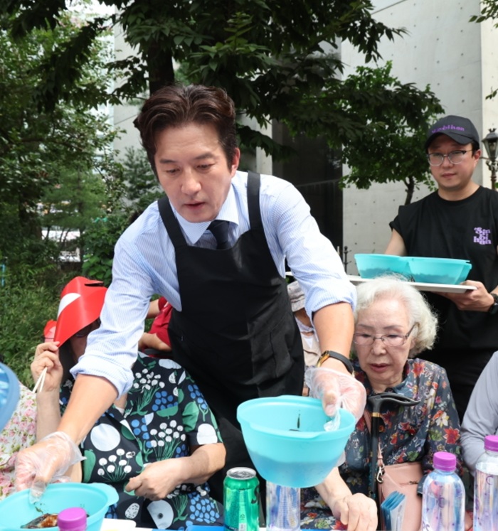 '마포효도밥상 홍보대사' 정준호와 '마포구 홍보대사' 김흥국이 나란히 '짜장면 봉사 활동'을 펼쳤다.