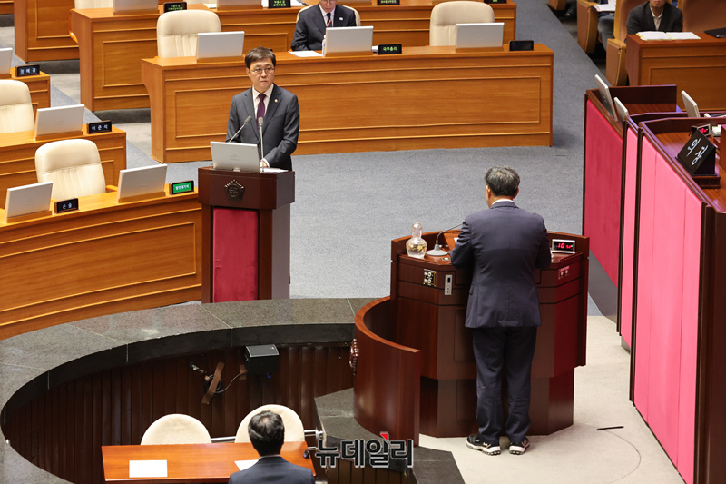 최휘영 문화체육관광부 장관이 18일 국회 본회의장에서 열린 교육·사회·문화 분야 대정부질문에서 의원들의 질문에 답하고 있다.