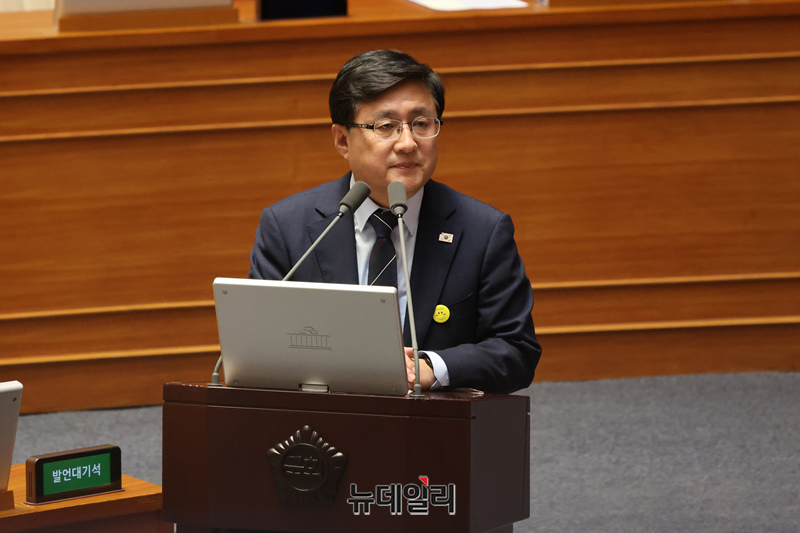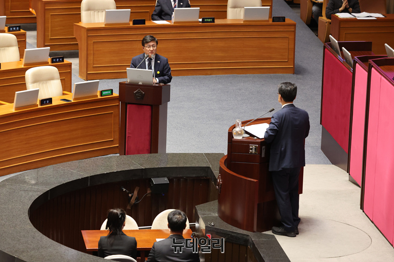 김성환 환경부 장관이 18일 오후 국회에서 열린 본회의에서 대정부 질문에 출석해 의원들의 질문에 답하고 있다.