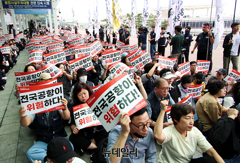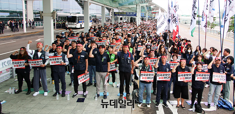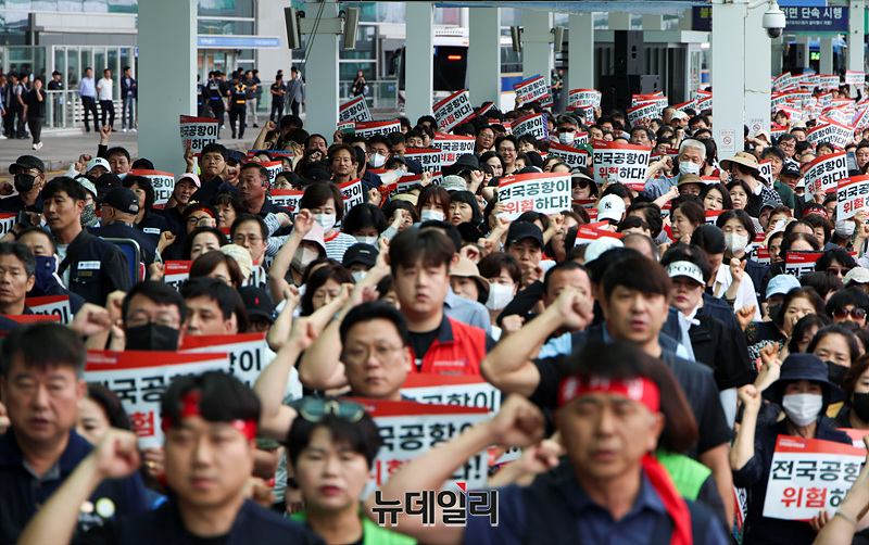 [포토] 민노총·전국공항노동조합, 추석 앞두고 총파업 경고
