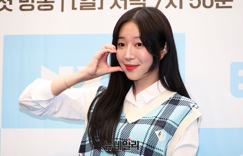 유튜버 쯔양이 19일 오후 서울 마포구 스탠포드호텔에서 열린 ENA, NXT, 코미디TV 공동제작 예능 프로그램 '어디로 튈지 몰라' 제작발표회에서 포즈를 취하고 있다.