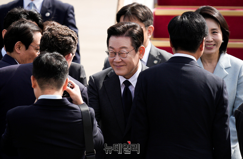 제 80차 유엔(UN) 총회 참석차 출국하는 이재명 대통령이 22일 오전 경기 성남시 서울공항을 통해 출국하며 인사를 나누고 있다. (경기 성남=서성진 기자)