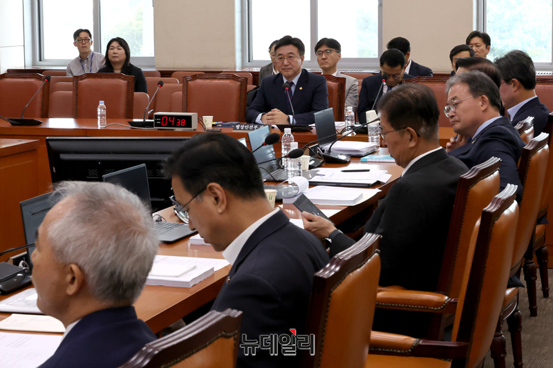 윤호중 행정안전부 장관이 22일 오전 국회에서 열린 행정안전위원회 전체회의에서 답변하고 있다.