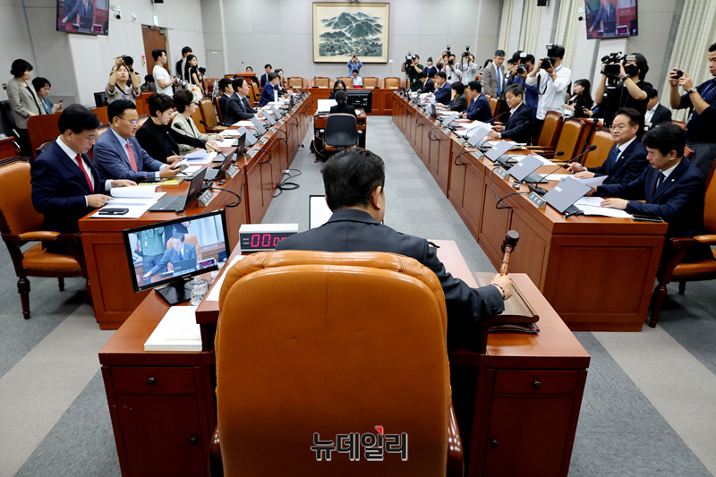 김병기 국회 운영위원장이 22일 오후 국회에서 열린 국회운영위원회 전체회의에서 의사봉을 두드리고 있다.