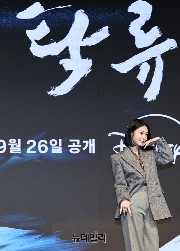 배우 신예은이 23일 오전 서울 강남구 엘리에나 호텔에서 열린 디즈니+ 사극시리즈 '탁류(연출 추창민, 극본 천성일)' 제작보고회에서 포즈를 취하고 있다.'탁류'는 조선의 모든 돈과 물자가 모여드는 경강을 둘러싸고 혼탁한 세상을 뒤집고 사람답게 살기 위해 각기 다른 꿈을 꿨던 이들의 운명 개척 액션 드라마다.배우 로운, 신예은, 박서함, 박지환, 최귀화, 전배수, 김동원 등이 출연한다. 총 9부작으로 9월 26일 첫 에피소드 공개를 시작으로 매주 금요일 나머지 에피소드가 공개된다.