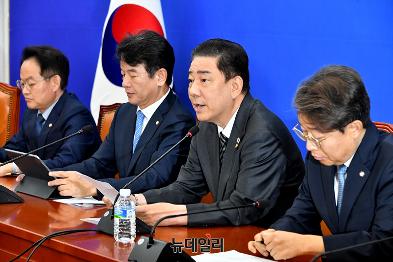 김병기 더불어민주당 원내대표가 23일 오전 국회에서 열린 원내대책회의에서 모두발언을 하고 있다.