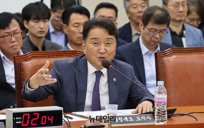김영환 충청북도 도지사가 23일 오전 서울 여의도 국회 행정안전위원회에서 열린 오송 지하차도 참사 진상규명과 재발방지 대책마련을 위한 국정조사 청문회에서 의원의 질의에 답변하고 있다.