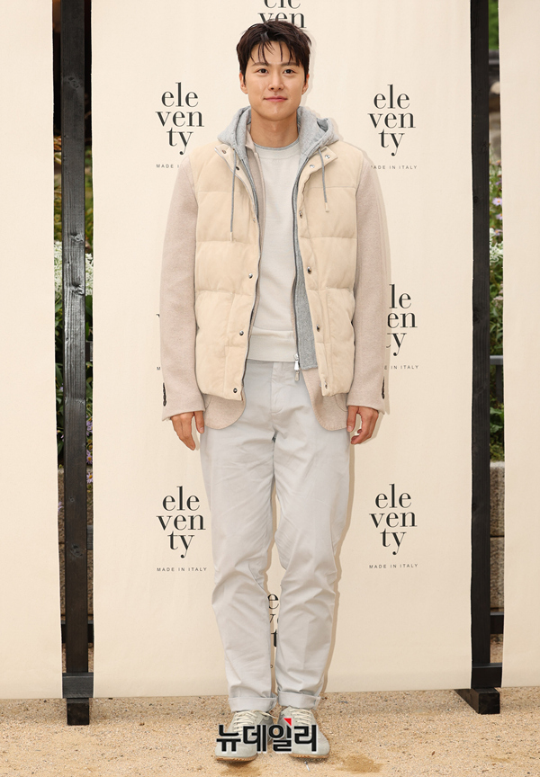 배우 공명이 23일 오후 서울 종로구 휘겸재에서 열린 이탈리아 하이엔드 브랜드 일레븐티(eleventy) 2025 가을 겨울 컬렉션 프리뷰 행사에서 포즈를 취하고 있다.