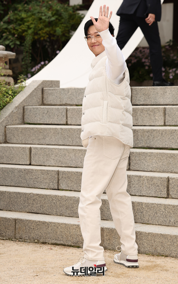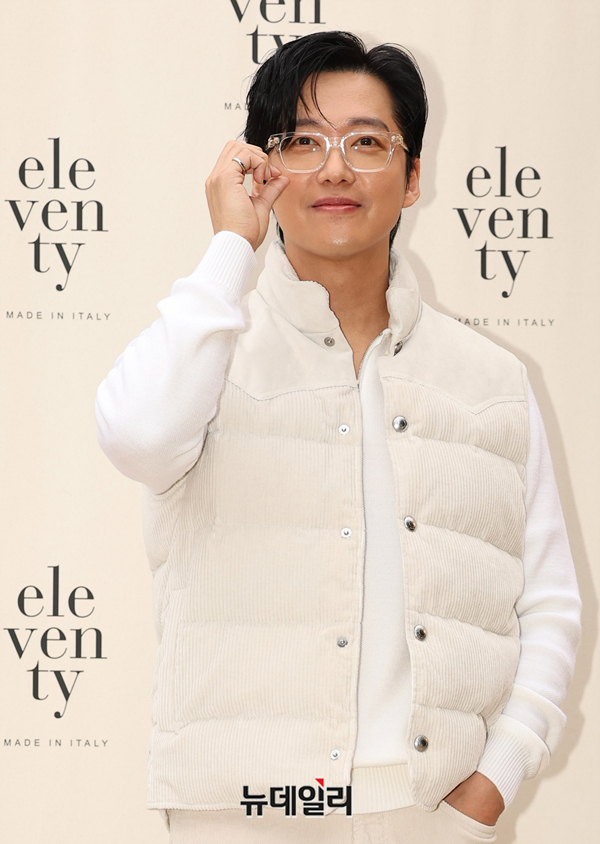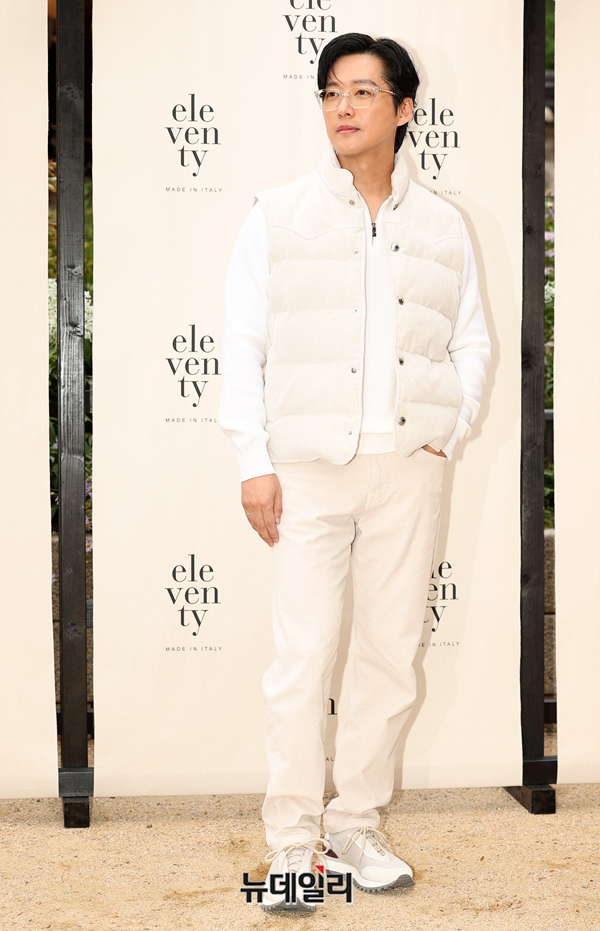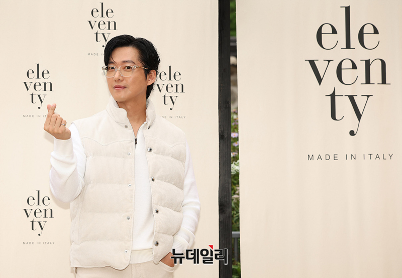 배우 남궁민이 23일 오후 서울 종로구 휘겸재에서 열린 이탈리아 하이엔드 브랜드 일레븐티(eleventy) 2025 가을 겨울 컬렉션 프리뷰 행사에서 포즈를 취하고 있다.