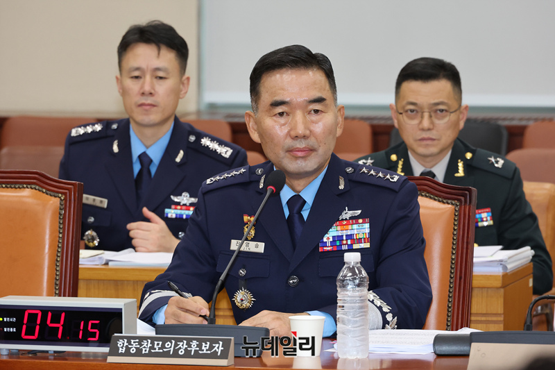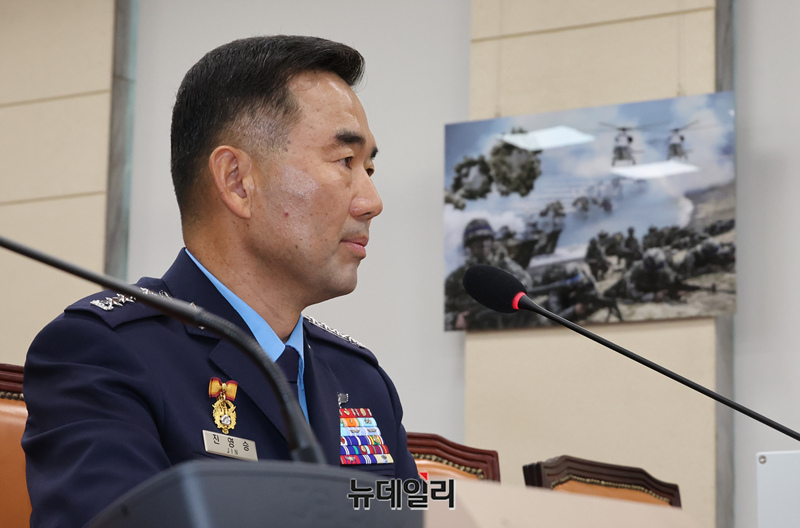 진영승 합동참모의장 후보자가 24일 오전 국회 국방위원회 전체회의에서 열린 인사청문회에 출석해 의원들의 질문에 답하고 있다.