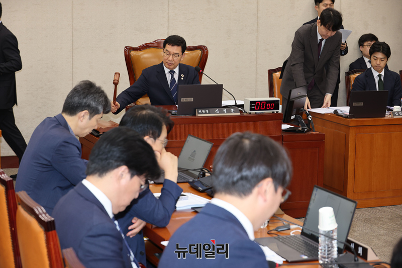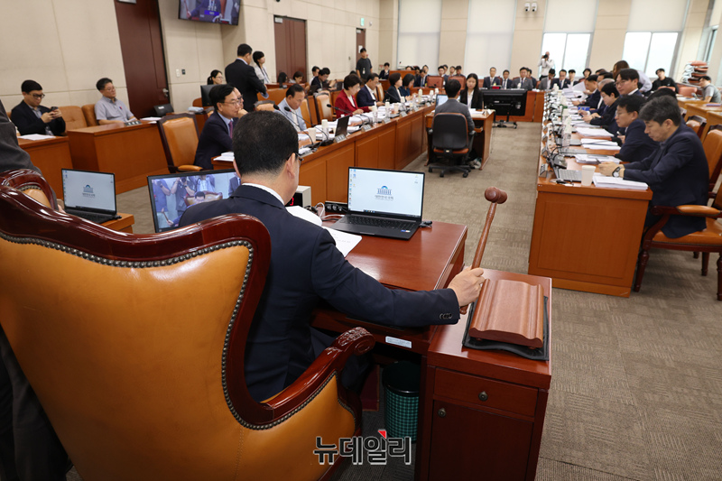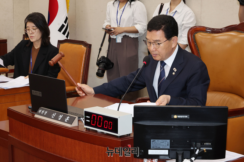 신정훈 행정안전위원장이 25일 오전 국회에서 열린 행정안전위원회 전체회의에서 의사진행을 하고 있다.