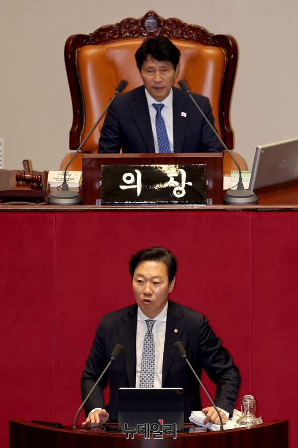 박수민 국민의힘 의원이 25일 오후 국회에서 열린 본회의에서 정부조직법 일부개정법률안(대안)에 대한 무제한토론(필리버스터)을 하고 있다.