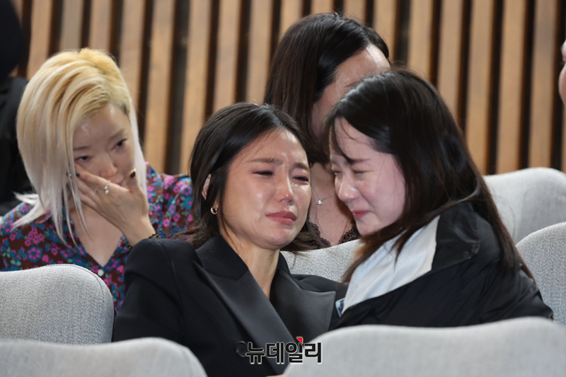 문신사들이 25일 국회에서 열린 본회의에서 문신사법안이 가결되자 눈물을 흘리고 있다.