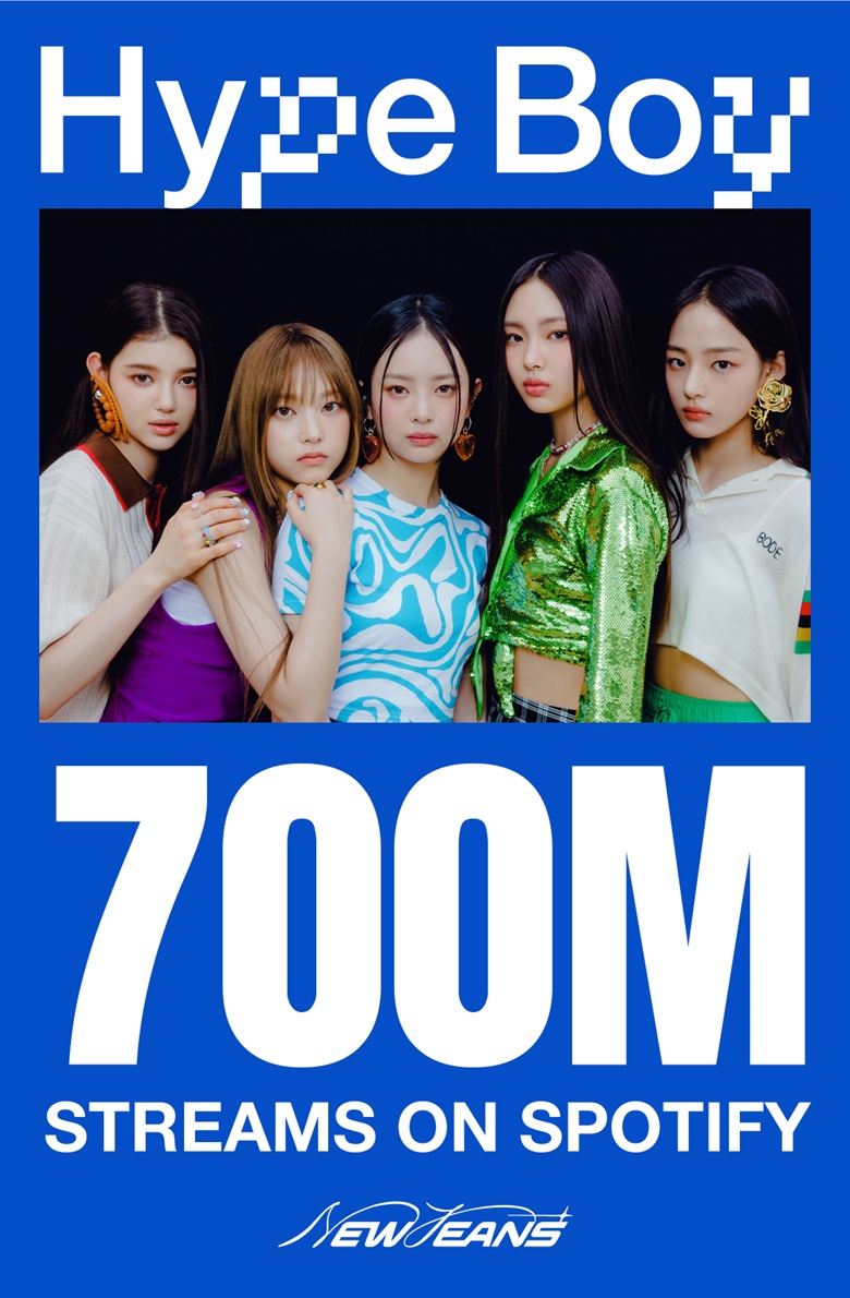 뉴진스(NewJeans)의 메가 히트곡 '하입 보이(Hype Boy)'가 세계 최대 음원 스트리밍 플랫폼 스포티파이에서 7억 스트리밍을 돌파했다.