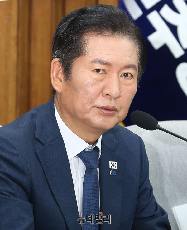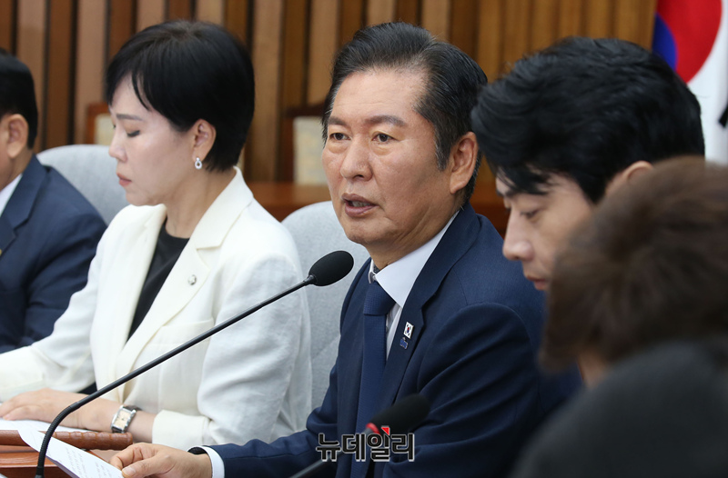 정청래 더불어민주당 대표가 26일 오전 국회에서 열린 확대간부회의에서 발언을 하고 있다.
