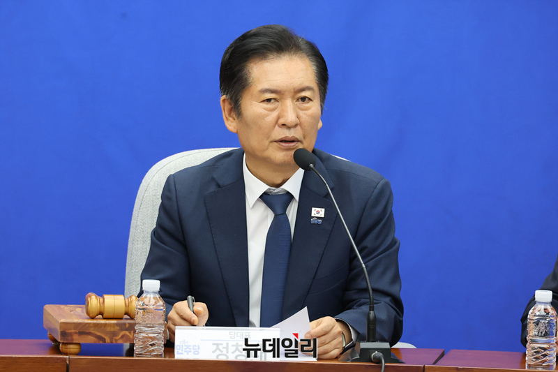 정청래 더불어민주당 대표가 26일 국회에서 열린 시도당위원장 연석회의에서 모두발언을 하고 있다.