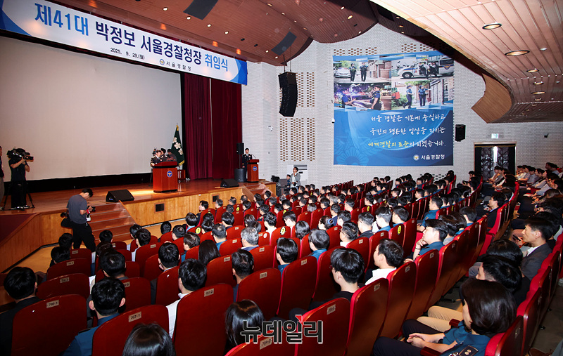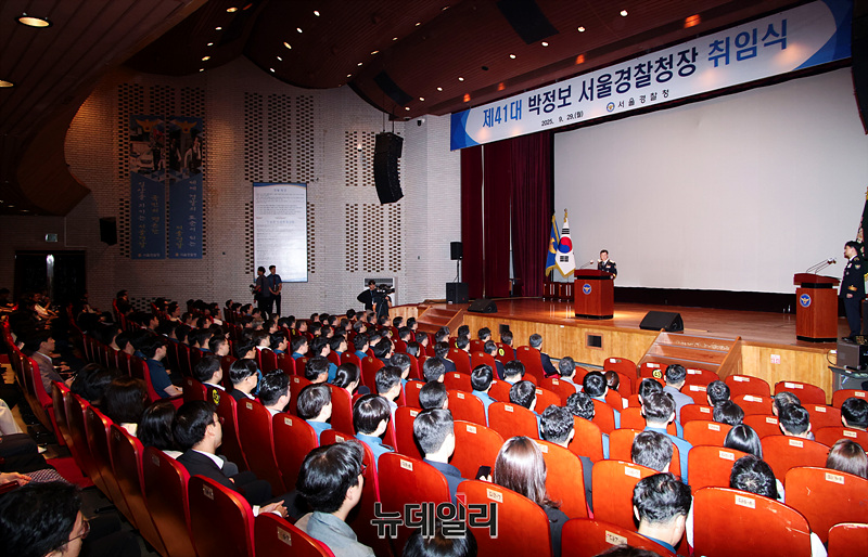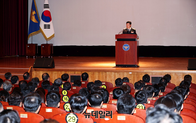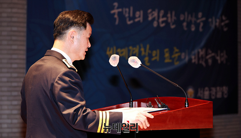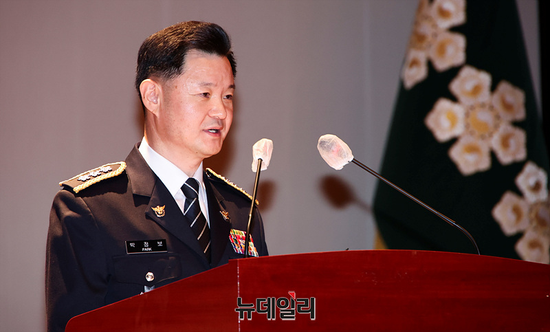 박정보 신임 서울경찰청장이 29일 오전 서울 종로구 서울경찰청에서 열린 취임식에서 취임사를 하고 있다.