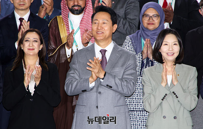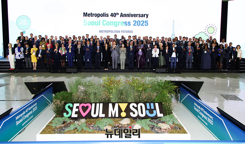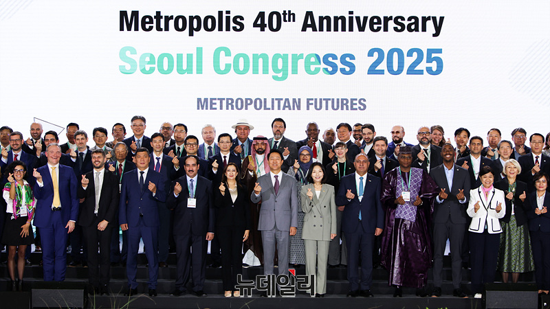 오세훈 서울시장을 비롯한 참석자들이 29일 오후 서울 중구 동대문디자인플라자에서 열린 2025 세계대도시협의회 창립 40주년 기념 서울총회 개회식에서 기념촬영을 하고 있다.