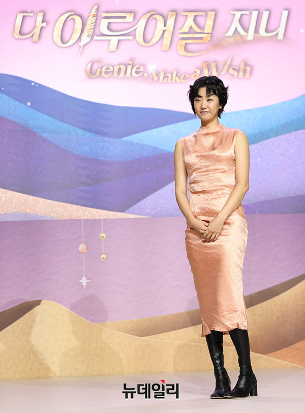 배우 이주영이 29일 오후 서울 강남구 조선팰리스 서울에서 열린 넷플릭스 시리즈 '다 이루어질지니(극본 김은숙)' 제작발표회에서 포즈를 취하고 있다.추석을 앞두고 공개되는 '다 이루어질지니'는 천여 년 만에 깨어난 경력 단절 램프의 정령 지니(김우빈 분)가 감정 결여 인간 가영(수지 분)을 만나 세 가지 소원을 두고 벌이는 스트레스 제로, 판타지 로맨틱 코미디다.배우 김우빈, 수지, 안은진, 노상현, 고규필, 이주영 등이 출연한다. 10월 3일 공개.