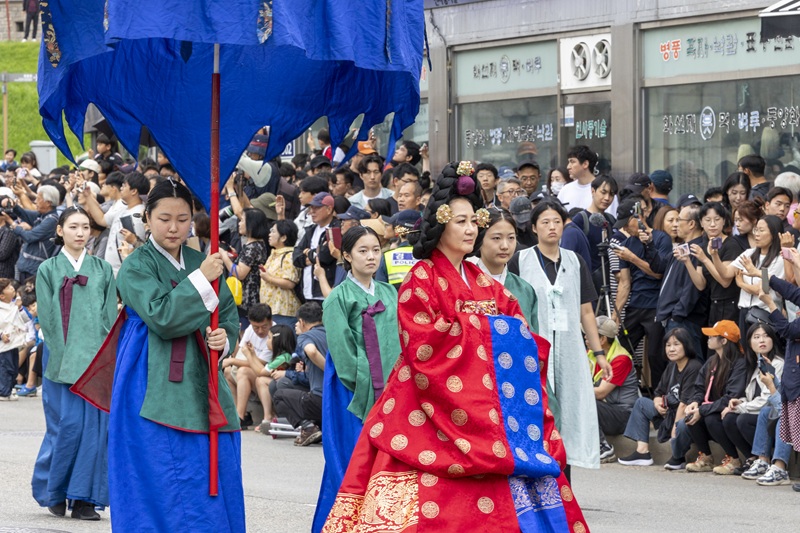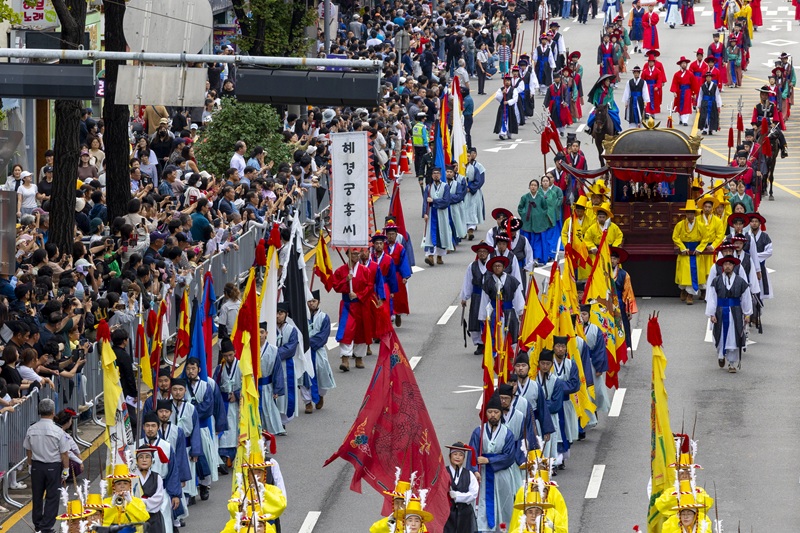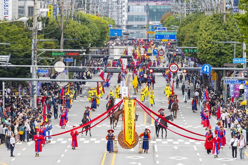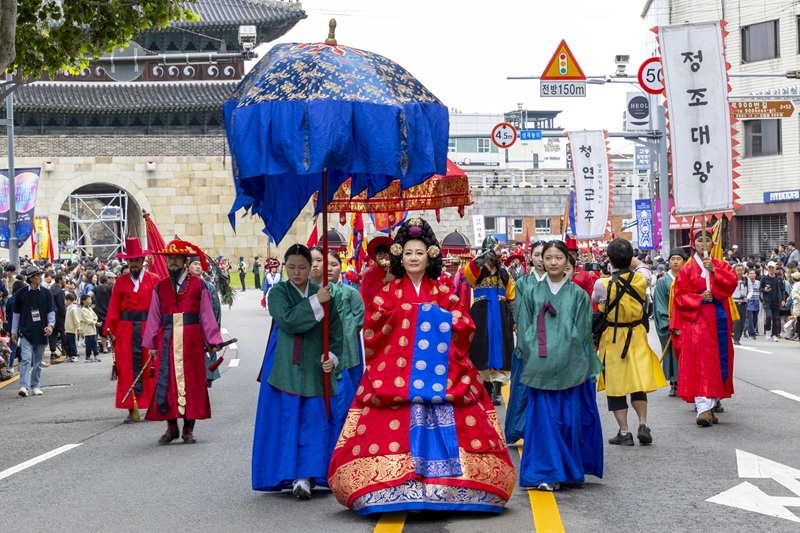 2025년 정조대왕능행차 공동재현 서울~수원~화성 31.3km 구간 걸어행궁광장서 선보인 새로운 연출정조대왕능행차 재현행렬, 입궁퍼포먼스