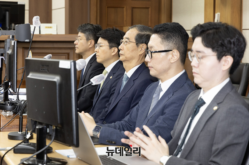 [포토] 첫 재판 출석한 한덕수 전 국무총리