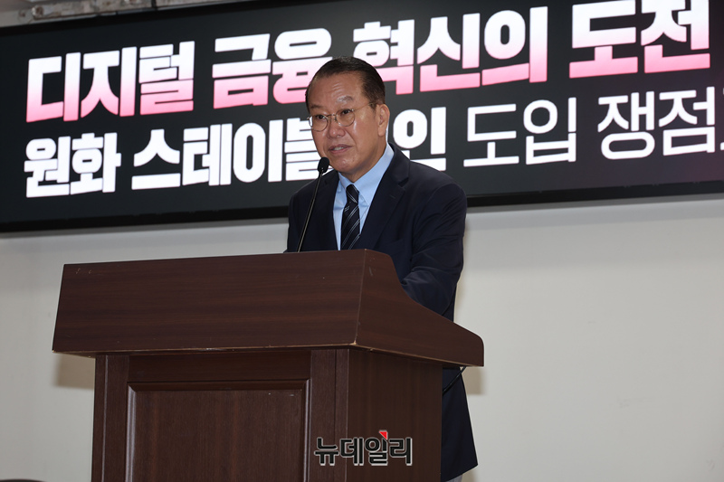 권영세 국민의힘 의원이 30일 국회 의원회관에서 열린 원화 스테이블코인 도입 토론회에서 인사말을 하고 있다.