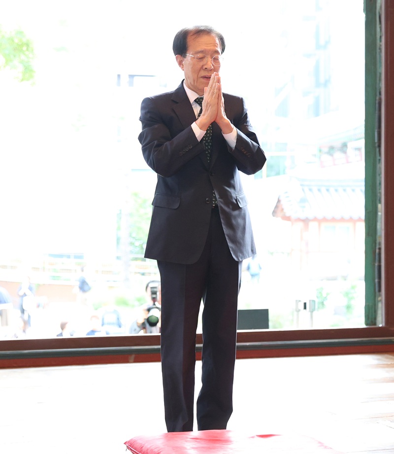 이는 국민통합위원회 위원장으로서 국민통합에 대한 종교 지도자들의 목소리를 경청하고자 마련된 자리로, 같은 날 오전에는 천주교 서울대교구 정순택 대주교를 예방했다. -