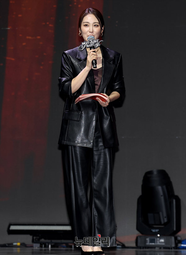 방송인 신아영이 30일 오후 서울 광진구 예스24 라이브홀에서 열린 걸그룹 이즈나(izna) 두 번째 미니앨범 '낫 저스트 프리티(Not Just Pretty)' 쇼케이스에서 인사말을 하고 있다.