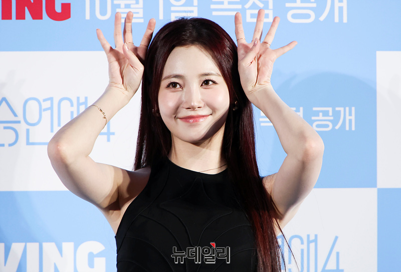 방송인 유라가 1일 오전 서울 용산구 CGV아이파크몰에서 열린 예능 환승연애4 제작발표회에서 포즈를 취하고 있다.