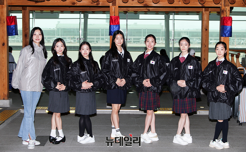 발레 국가대표로 선발된 이진민, 정윤서, 한서연, 채유록, 유시안, 안승아 발레리나와 이가영 코치가 4일 인천국제공항에서 유리 그리가로비치 추모 유네스코 국제발레콩쿠르에 출전하기 위해 출국하며 기념촬영을 하고 있다.지난달 발레앤모델AI 주최 '예브게니야 오브라초바(Evgenia Obraztsova) 발레 워크숍'에서 선발된 7명의 국가대표는 러시아 소치에서 열리는 유리 그리가로비치 추모 유네스코 국제발레콩쿠르에 출전한다.이번 대회는 '위대한 안무가 유리 그리가로비치에게 바칩니다'라는 주제로 전 세계 언론과 무용인들이 한자리에 모여 치러질 예정이다. (인천=서성진 기자)
