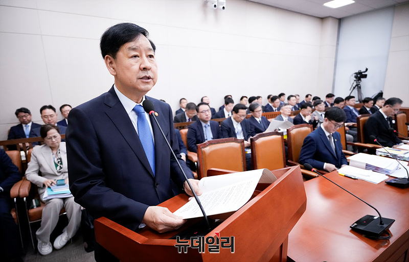 구윤철 부총리 겸 기획재정부 장관이 13일 오전 국회에서 열린 기획재정위원회의 기획재정부에 대한 국정감사에서 업무보고를 하고 있다.