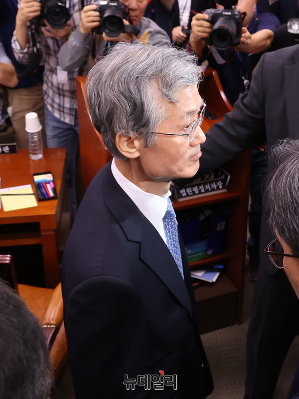 조희대 대법원장이 13일 오전 국회에서 열린 국회 법제사법위원회의 대법원 등에 대한 국정감사에 출석해 인사말을 마친 후 이석하고 있다.