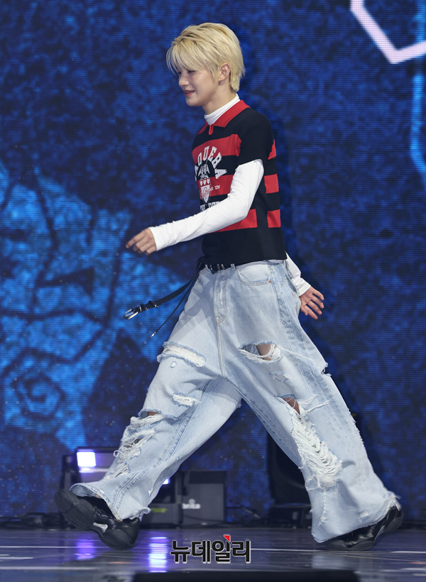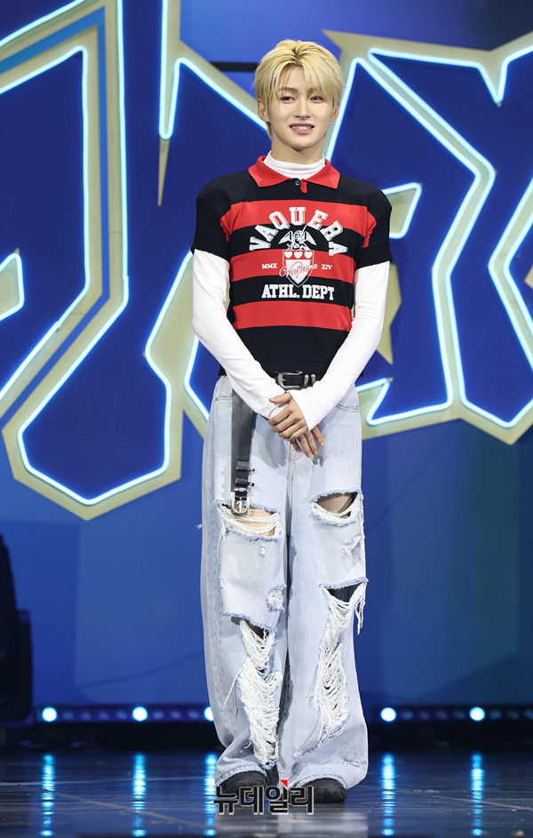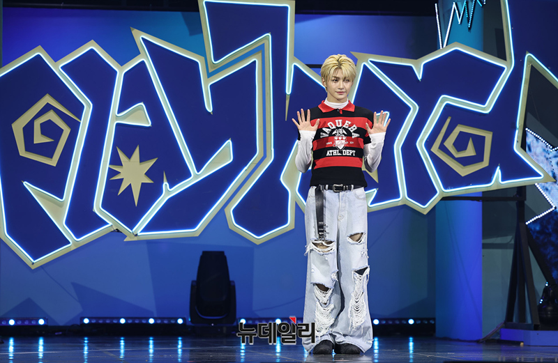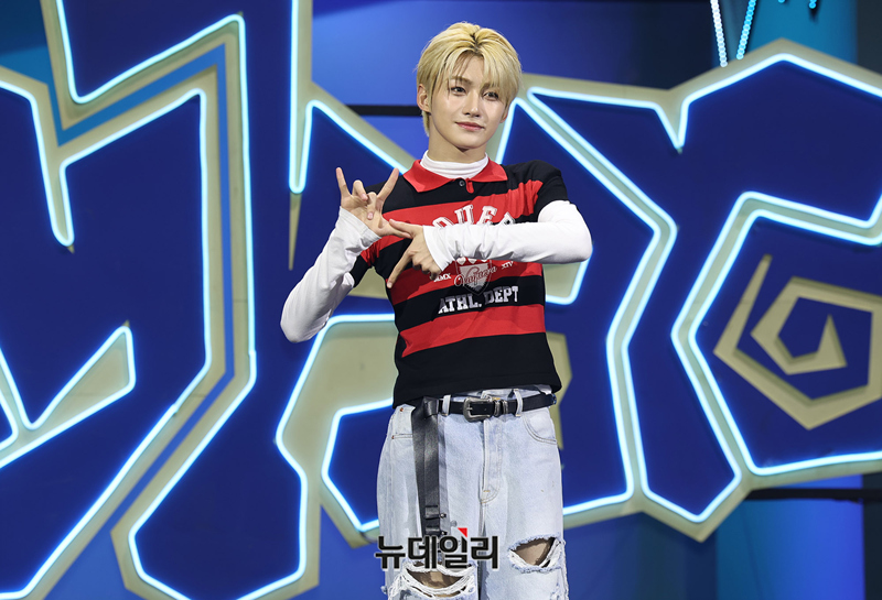 그룹 투어스(TWS) 지훈이 13일 오후 서울 광진구 예스24 라이브홀에서 열린 미니 4집 ‘play hard(플레이 하드)’ 쇼케이스에서 포즈를 취하고 있다.