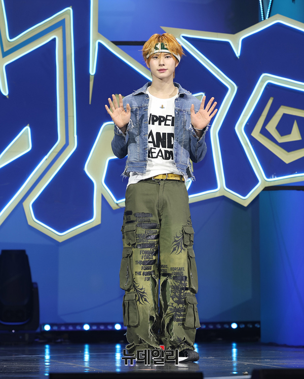 그룹 투어스(TWS) 경민이 13일 오후 서울 광진구 예스24 라이브홀에서 열린 미니 4집 ‘play hard(플레이 하드)’ 쇼케이스에서 포즈를 취하고 있다.