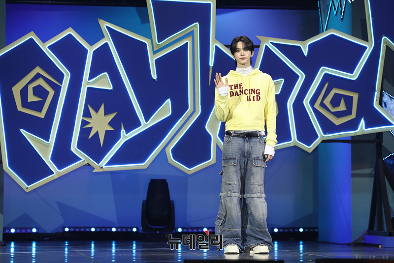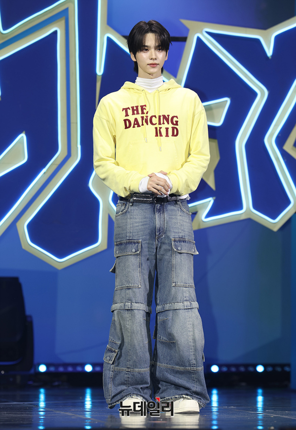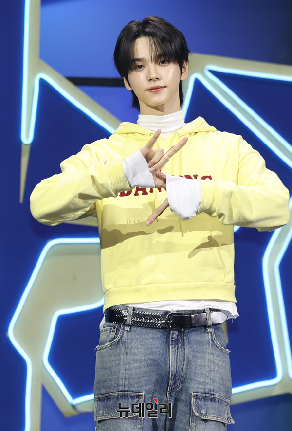 그룹 투어스(TWS) 신유가 13일 오후 서울 광진구 예스24 라이브홀에서 열린 미니 4집 ‘play hard(플레이 하드)’ 쇼케이스에서 포즈를 취하고 있다.