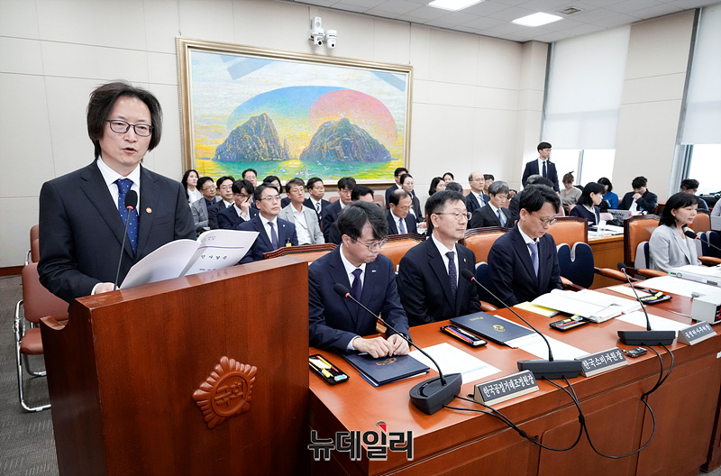 주병기 공정거래위원이 14일 오전 국회에서 열린 정무위원회 국정감사에 출석해 업무보고를 하고 있다.