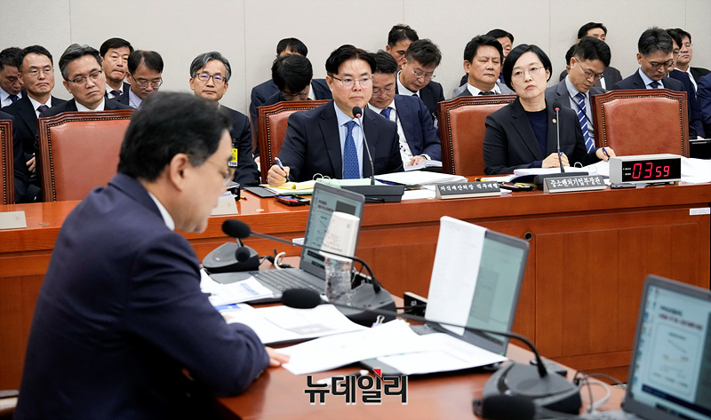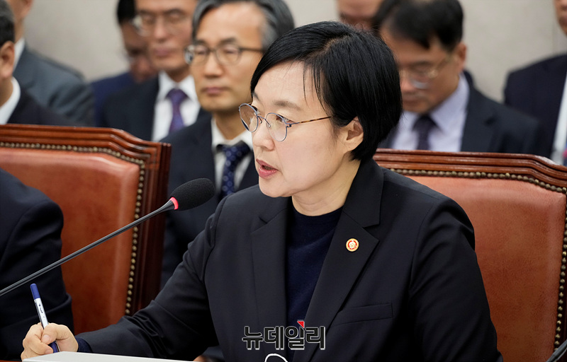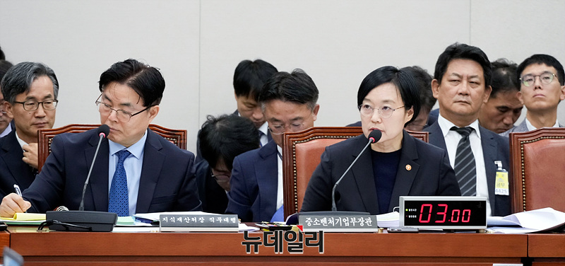 한성숙 중소벤처기업부 장관이 14일 오전 국회에서 열린 산업통상자원중소벤처기업위원회 국정감사에서 의원들의 질의에 답하고 있다.