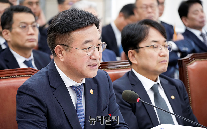 윤호중 행정안전부 장관이 14일 국회에서 열린 행정안전위원회의 행정안전부 등 국정감사에서 의원들의 질의에 답변하고 있다.