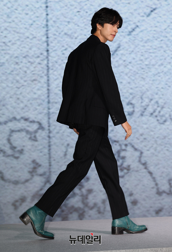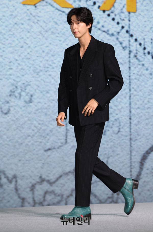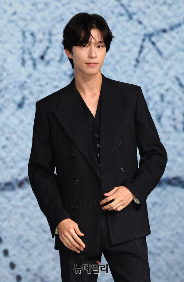 배우 홍경이 14일 오전 서울 종로구 JW 메리어트 동대문 스퀘어에서 열린 넷플릭스 영화 '굿뉴스(감독 변성현)' 제작발표회에서 포즈를 취하고 있다.
