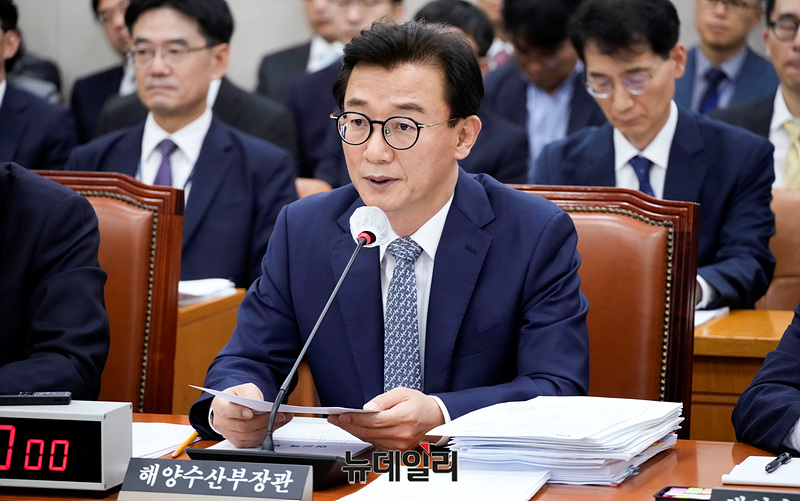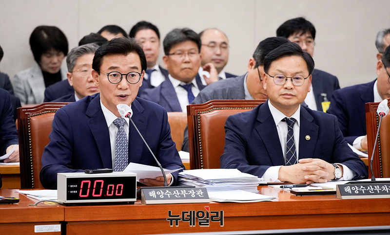 전재수 해양수산부 장관이 15일 오후 국회에서 열린 농림축산식품해양수산위원회 국정감사에서 의원들의 질의에 답하고 있다.