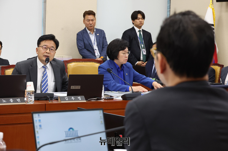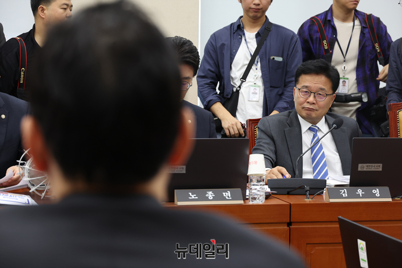 김우영 더불어민주당 의원이 16일 국회 과학기술정보방송통신위원회에서 열린 2025년도 국정감사에서 박정훈 국민의힘 의원의 문자 폭로 사태 관련 신상발언을 하고 있다.