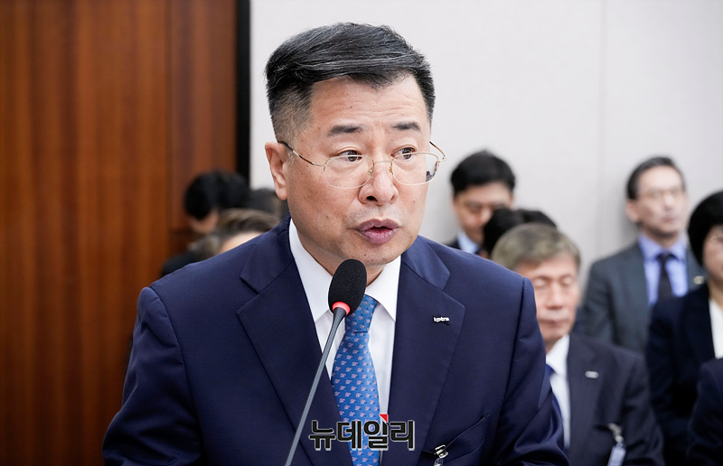 강경성 대한무역투자진흥공사(코트라) 사장이 16일 오전 국회에서 열린 산업통상자원중소벤처기업위원회 국정감사에서 업무보고를 하고 있다.